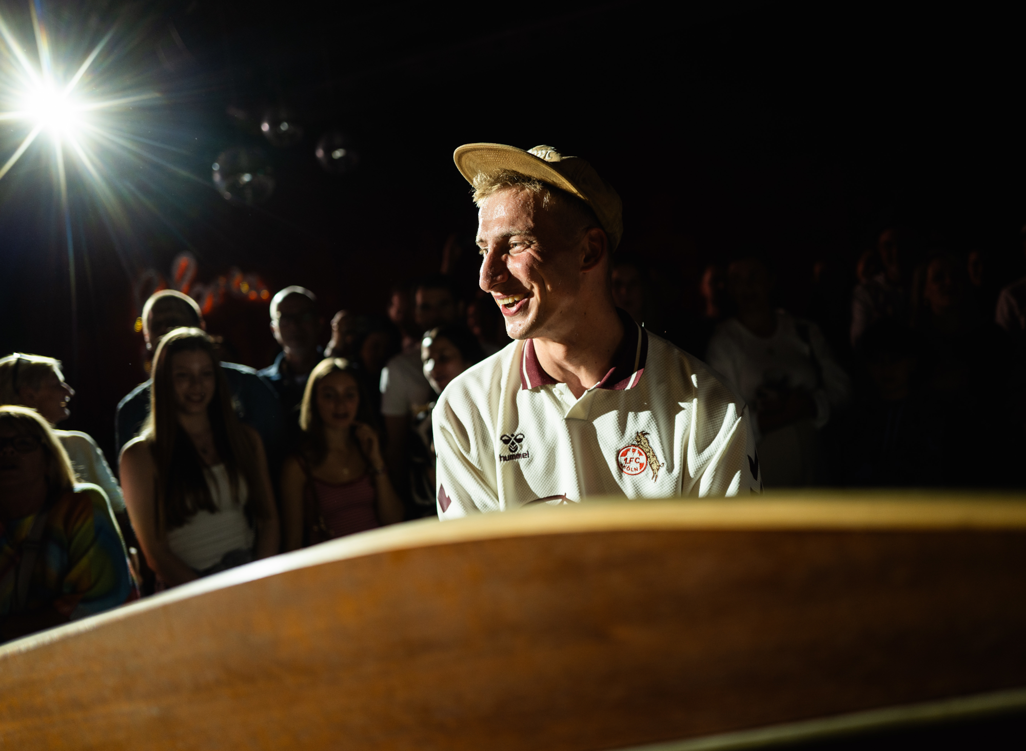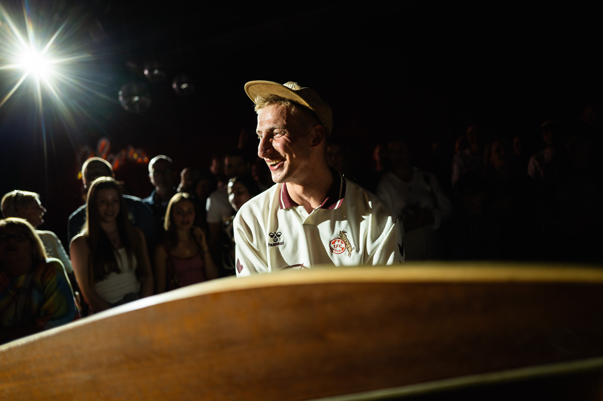 Thelonious hat früh begonnen, Grenzen zu verschieben. Mit 16 zog er sein Klavier unter dem Motto ,,Wer sein Klavier liebt, der schiebt!" zum ersten Mal durch die Kölner Südstadt und legte damit den Grundstein für eine künstlerische Laufbahn, die bis heute eng mit dem urbanen Leben verbunden ist. Ob in den Innenstädten zwischen Passanten, im FC-Stadion vor Tausenden, verkleidet als Mozart im Karneval oder in der Straßenbahn, die er mit spontanen Mitsing-Sessions in einen Konzertsaal verwandelte - Stadtgeklimper ist längst ein fester Bestandteil der rheinischen Kulturszene.